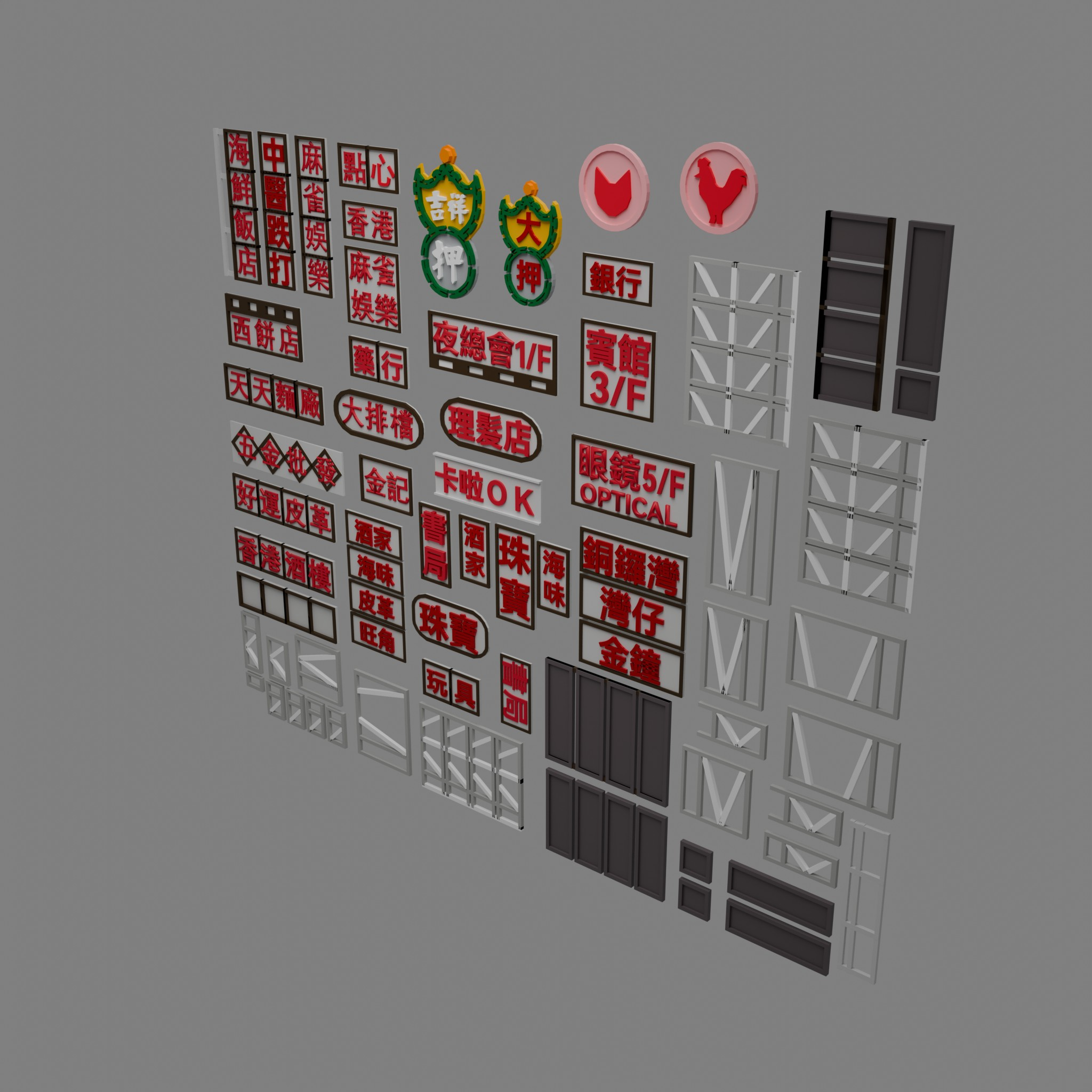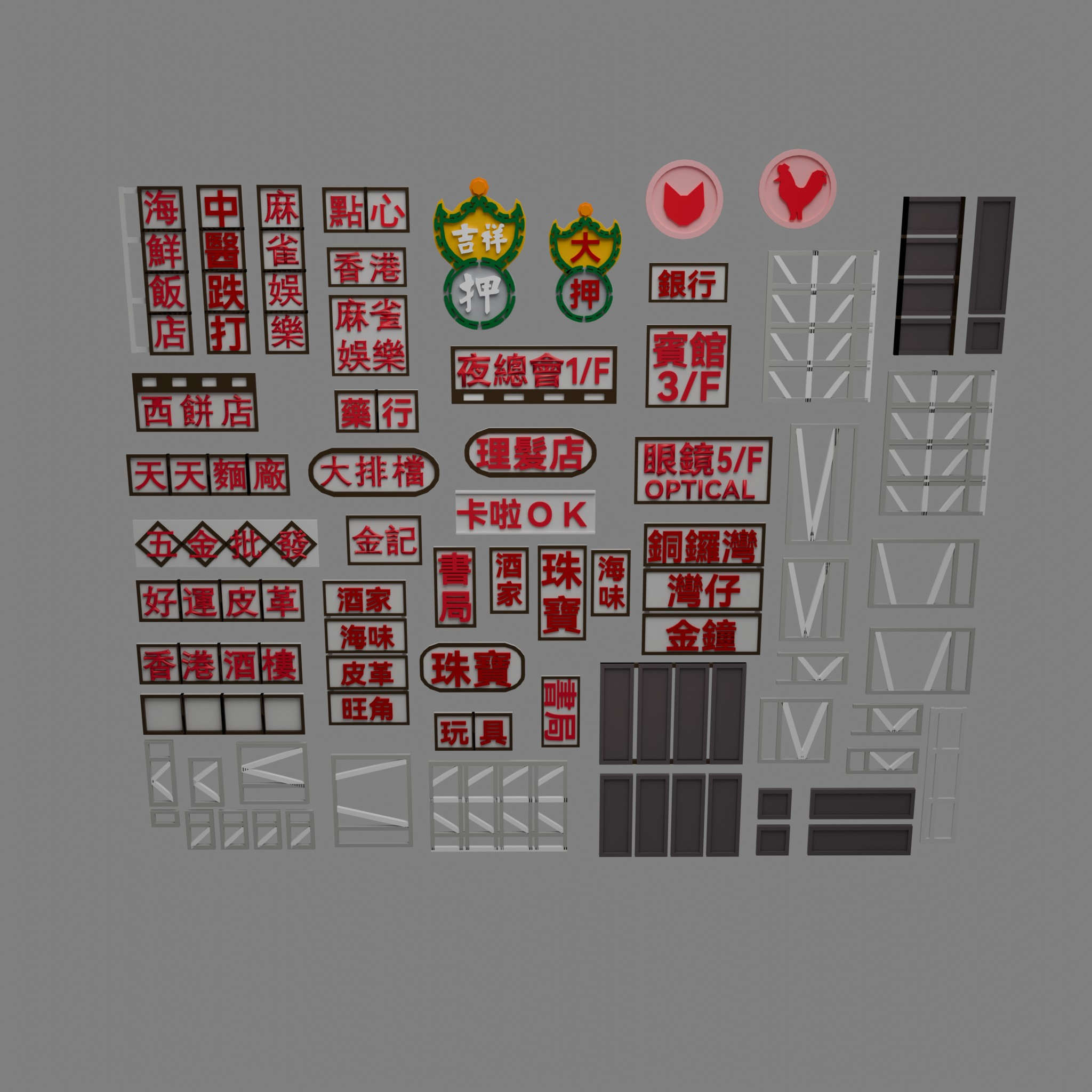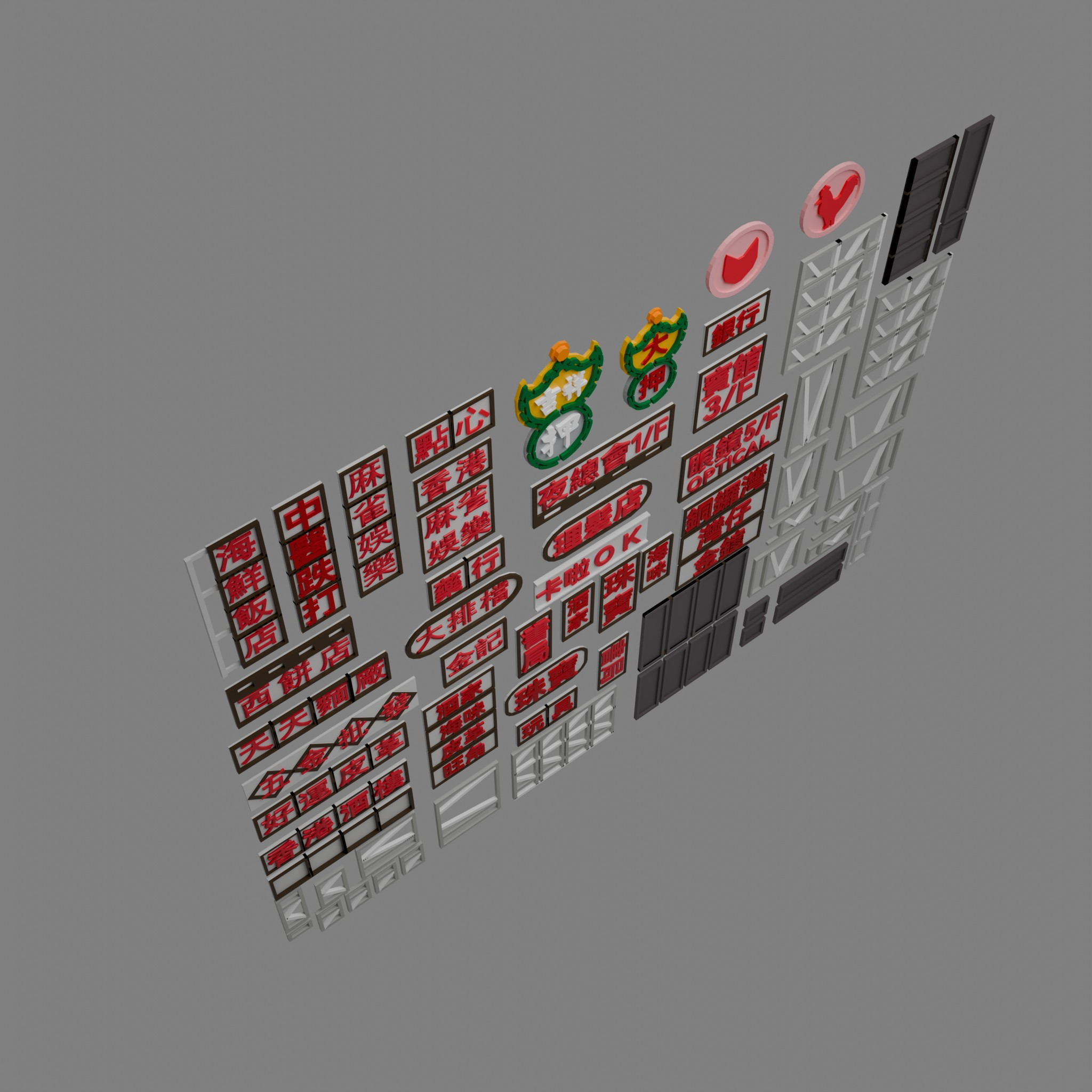 Hong Kong Signage 3D model Pack