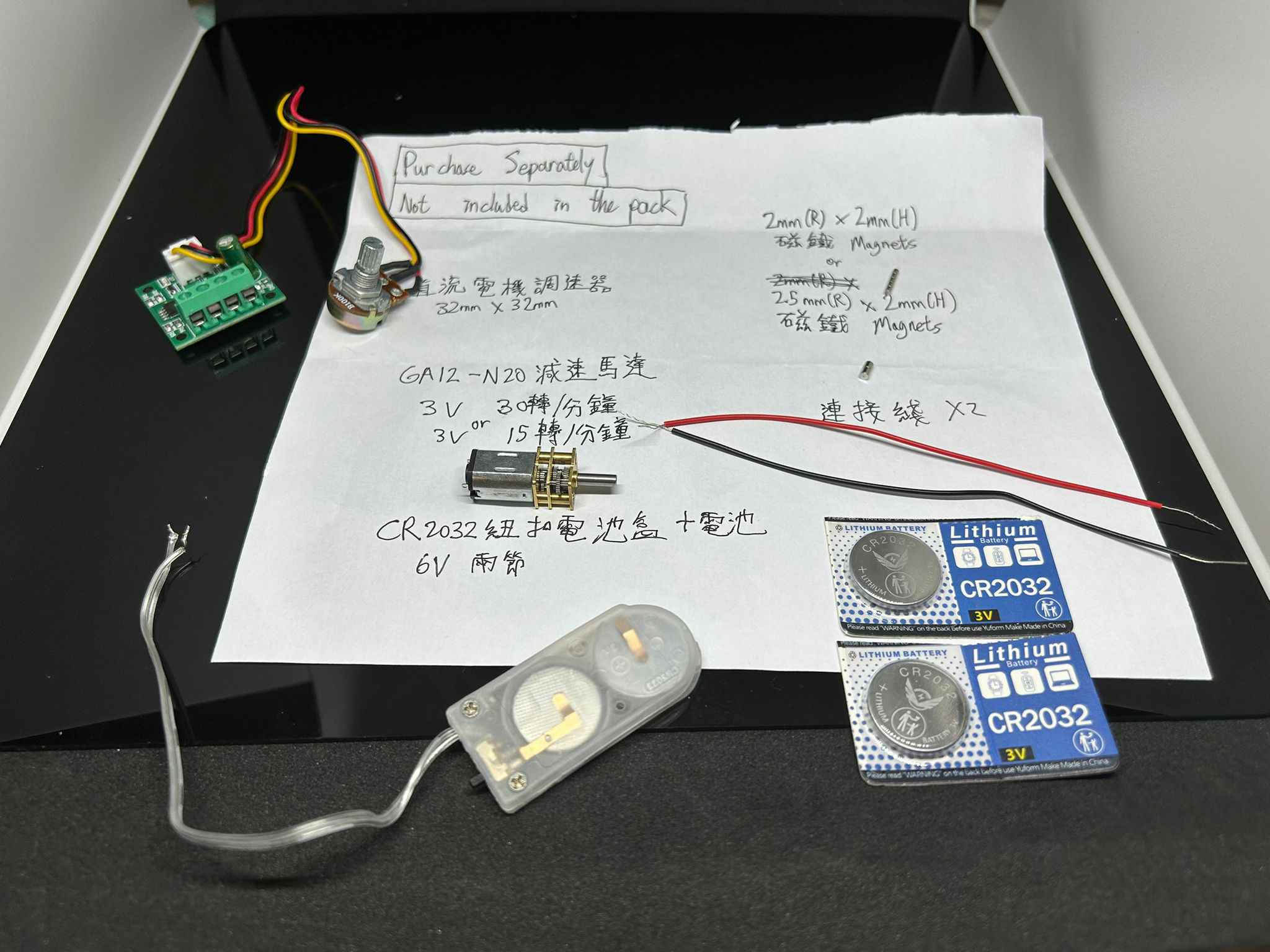 **Motor, magnets, and battery box are not included**.